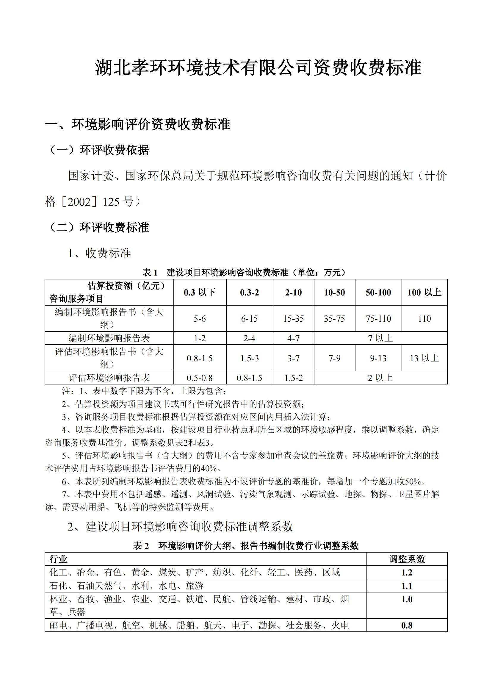 我公司主營業(yè)務(wù)主要包括環(huán)境影響評價、項目竣工環(huán)境保護驗收等,現(xiàn)對環(huán)境影響評價、項目竣工環(huán)境保護驗收的資費收費標準進行公示。